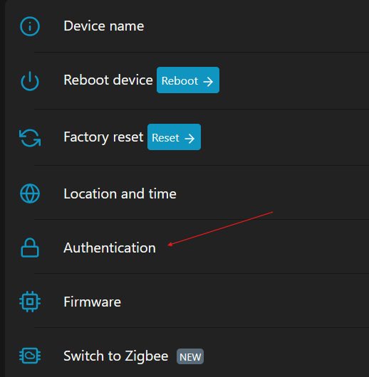 - Pour activer l’Authentication sur l’interface locale, la fonctionnalité peut être trouvée en accédant à votre appareil via son adresse IP (web UI)