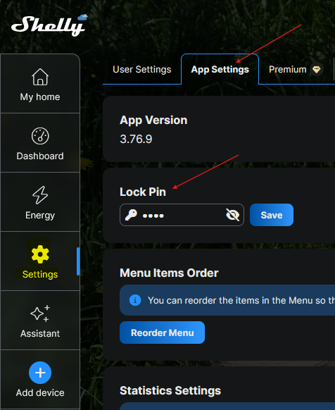 - Cette fonctionnalité est disponible uniquement dans l’application Shelly et peut être activée individuellement pour chaque appareil et l’option pour l’activer se trouve sous "Application settings":