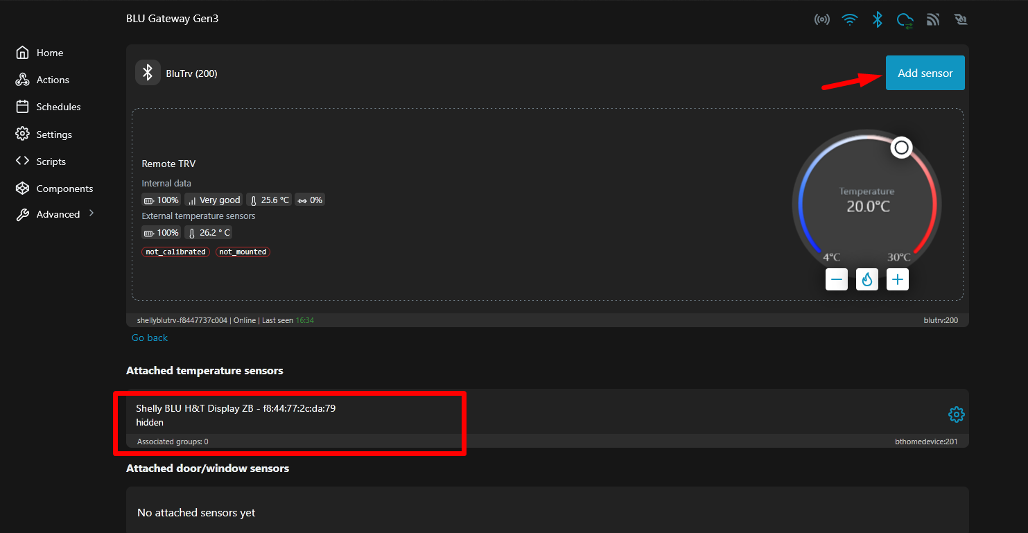 Quando o dispositivo entrar em modo de emparelhamento, atualize a página da interface web, se necessário. O sensor deverá aparecer na lista de Attached sensors.